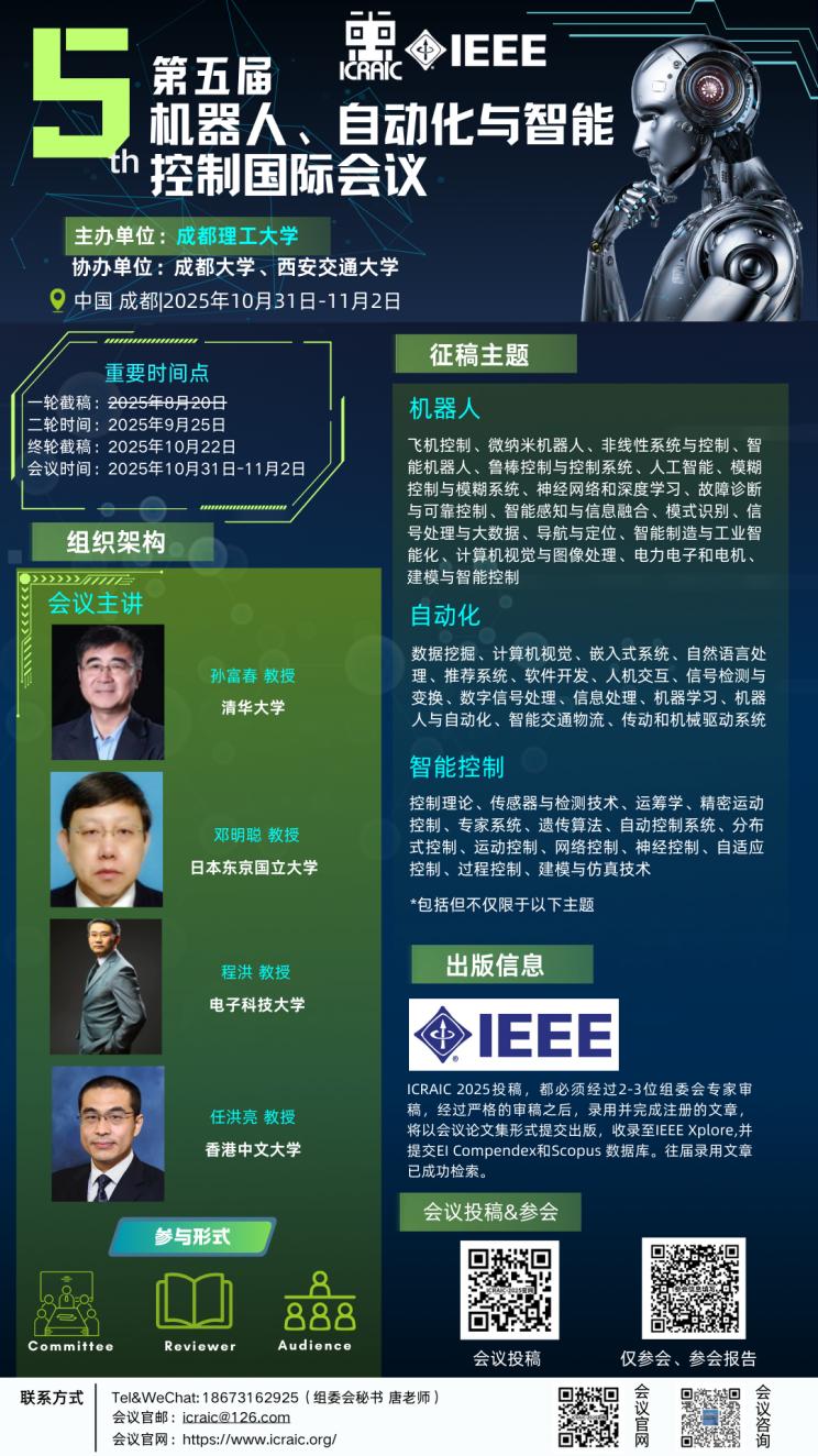 The 5th International Conference on Robotics, Automation and Intelligent Control(ICRAIC 2025)