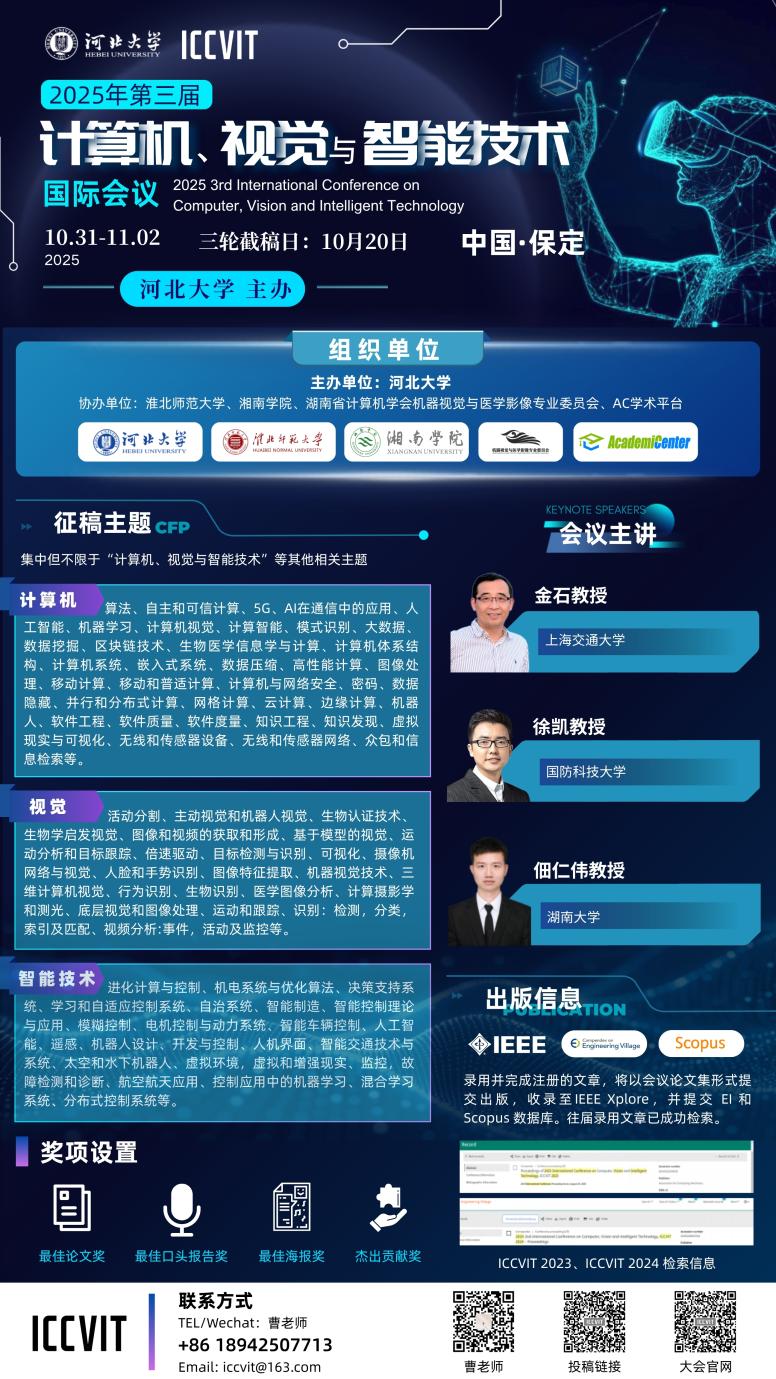 2025/10/31-11/2 | 保定 | 第三屆計算機、視覺與智能技術(shù)國際會議 |