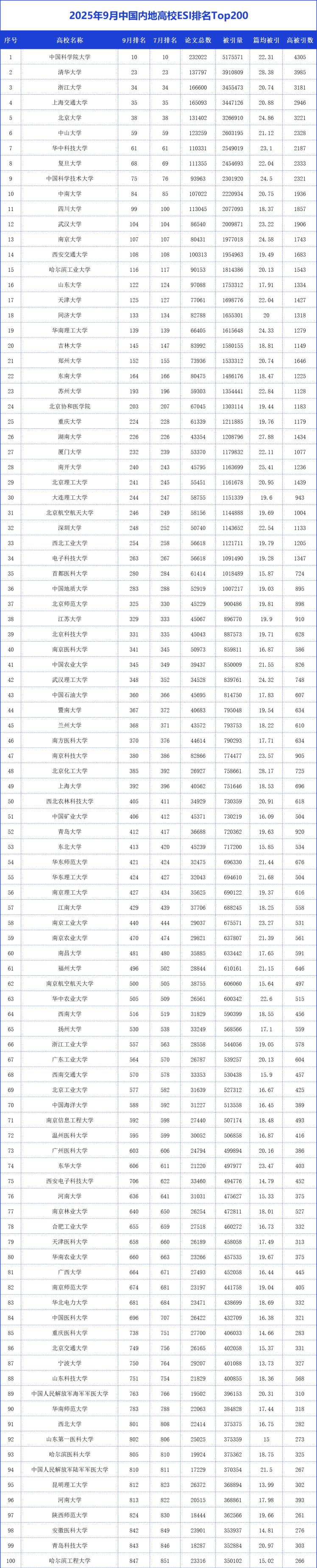【轉(zhuǎn)載】Top200!最新ESI排名,公布