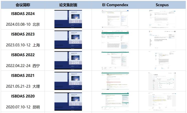 【往屆會(huì)議檢索記錄】ISBDAS 2018-2024 均已順利完成見(jiàn)刊檢索,最快會(huì)后兩個(gè)月檢索?。。?/span>