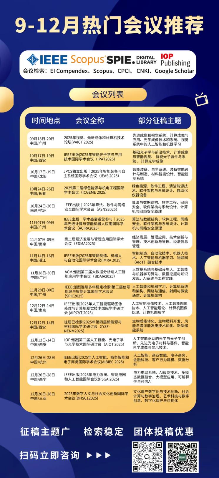 IEEE會議 快至7天錄用 全學(xué)科覆蓋 EI檢索穩(wěn)定