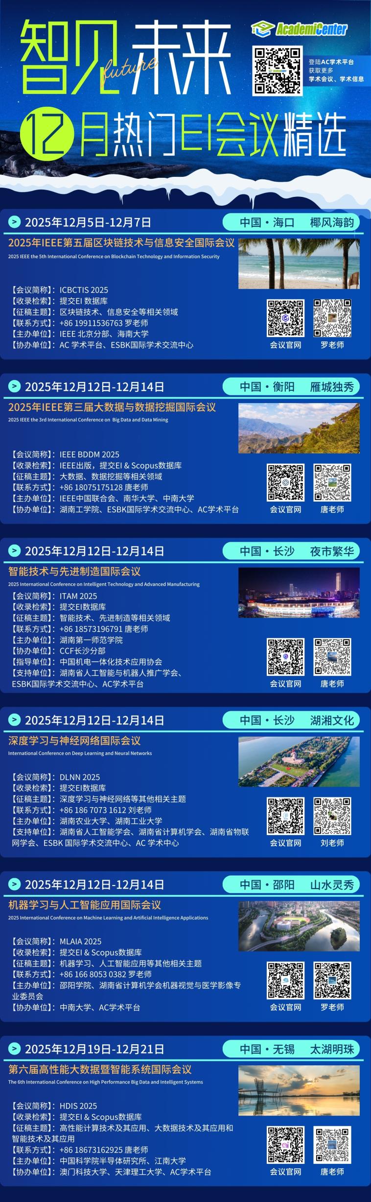 2025/12/12-14 | 衡陽 | 第三屆大數(shù)據與數(shù)據挖掘國際會議 |