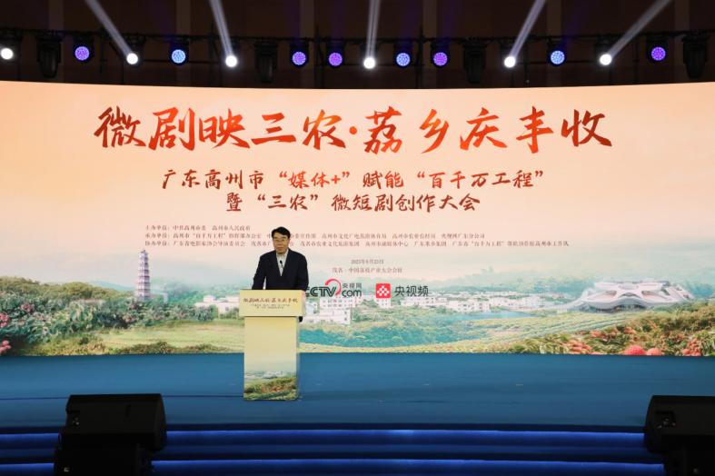 高州市委副書記、市長(zhǎng)盧巧智在致辭時(shí)表示,當(dāng)前,高州正以“媒體+”賦能“百千萬(wàn)工程”,探索數(shù)字內(nèi)容與農(nóng)業(yè)農(nóng)村現(xiàn)代化深度融合的新路徑,聯(lián)合省級(jí)媒體掛牌成立“粵港澳(茂名)三農(nóng)短劇拍攝創(chuàng)作合作區(qū)”,組建茂名·灘底微短劇經(jīng)濟(jì)服務(wù)中心,為劇組提供一站式服務(wù)。截至目前,已吸引108個(gè)劇組來高州取景,推出《荔鄉(xiāng)新夢(mèng)》《古荔新枝》等108部三農(nóng)題材微短劇,相關(guān)內(nèi)容播放量突破280萬(wàn)人次。微短劇不僅帶旺了荔枝、龍眼等特產(chǎn)銷售,更促進(jìn)了文旅融合,灘底村集體收入增長(zhǎng)40%,村民人均年收入增加近萬(wàn)元。未來,高州將以微短劇為媒介,繼續(xù)講好三農(nóng)故事,傳播荔鄉(xiāng)文化,展示鄉(xiāng)村新貌。誠(chéng)摯邀請(qǐng)更多媒體機(jī)構(gòu)、創(chuàng)作團(tuán)隊(duì)走進(jìn)高州,用鏡頭記錄高州的山水田園,用創(chuàng)意展現(xiàn)高州的農(nóng)耕文明,共同助力高州農(nóng)業(yè)更強(qiáng)、農(nóng)村更美、農(nóng)民更富。
