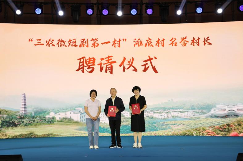 本次活動(dòng)還舉行灘底村名譽(yù)村長(zhǎng)聘請(qǐng)儀式。中央電視臺(tái)原副總編輯、中國(guó)電視劇制作中心原主任、四川文化藝術(shù)學(xué)院藝術(shù)總監(jiān)張華山,北京大學(xué)電視臺(tái)原臺(tái)長(zhǎng)、中國(guó)起源地智庫(kù)專家、中國(guó)華文教育基金會(huì)華夏之光專項(xiàng)基金秘書長(zhǎng)史俊英被聘請(qǐng)成為灘底“‘三農(nóng)’微短劇第一村”名譽(yù)村長(zhǎng)。