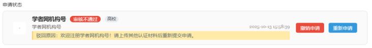 新版機構(gòu)號全面優(yōu)化了申請流程,采用 四步式可視化指引: 申請須知 → 填寫申請信息 → 管理員審核 → 認證完成。申請人可以實時查看審核進度,了解當(dāng)前所處階段。如果申請材料需要修改或補充,系統(tǒng)會提供詳細的提示與修改入口;在審核完成前,申請人也可隨時撤回申請,整個過程更加靈活可控。