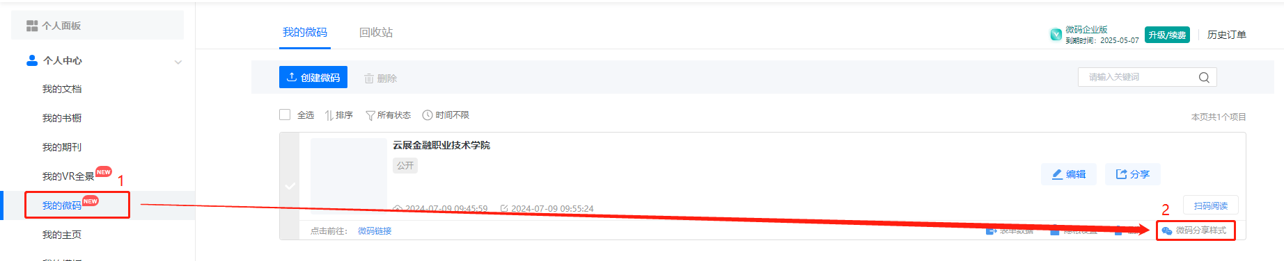 (1)點(diǎn)擊【我的微碼】,選擇需要設(shè)置的微碼,點(diǎn)擊【微碼分享樣式】。