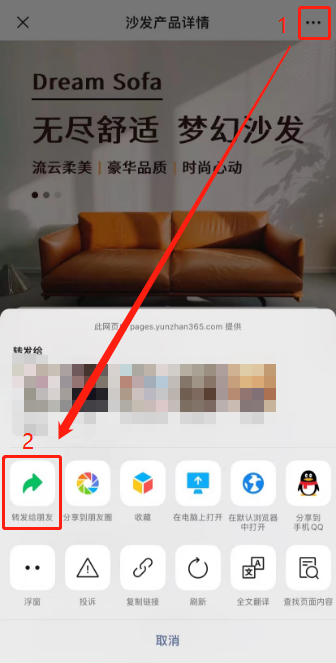 (2)打開微信掃一掃,掃描二維碼打開微碼,點(diǎn)擊右上角三個點(diǎn)【…】,點(diǎn)擊【轉(zhuǎn)發(fā)給朋友】,即可將微碼以標(biāo)題、描述、縮略圖的形式分享給微信好友。