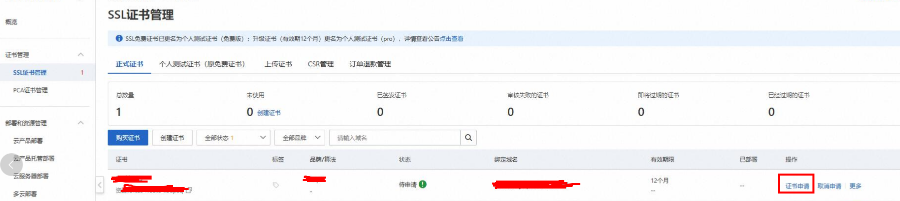 驗(yàn)證成功以后。證書需要等待阿里云那邊審核,一般一小時(shí)內(nèi)審核完成。