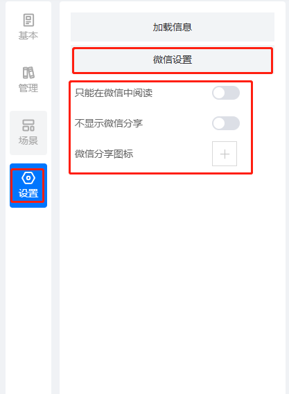 點擊【設(shè)置】,設(shè)置加載信息和微信設(shè)置。