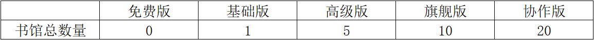 注意:不同賬號會員版本的可創(chuàng)建書館總數(shù)量不同,具體看下表: