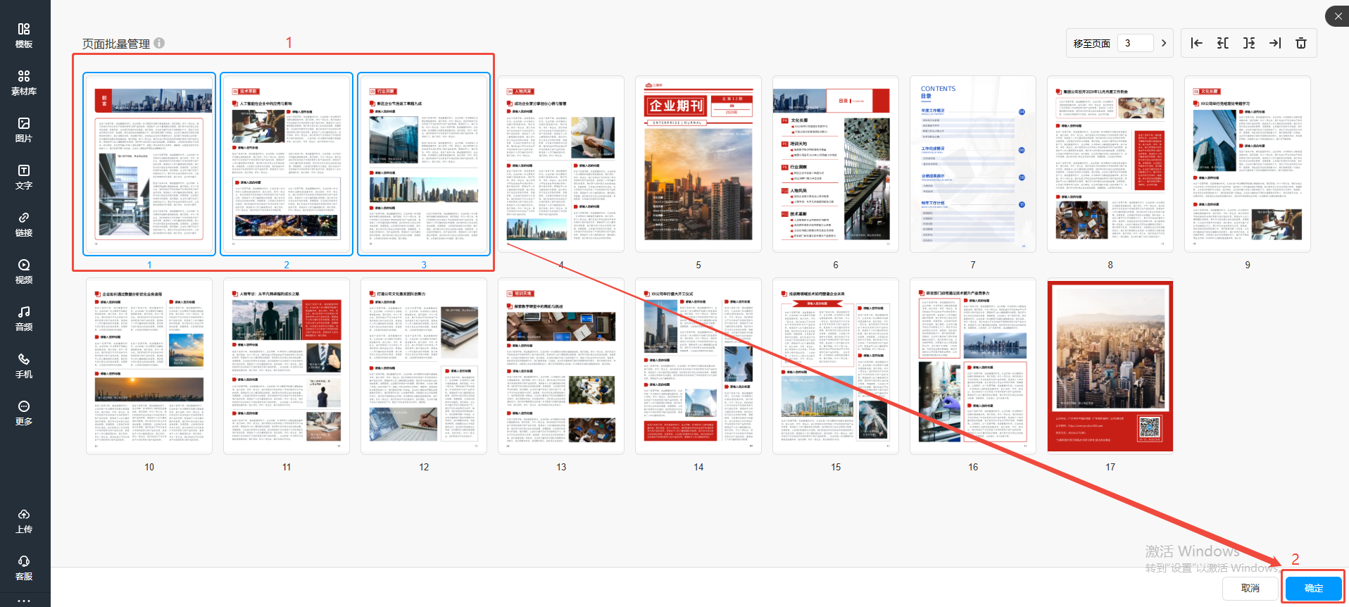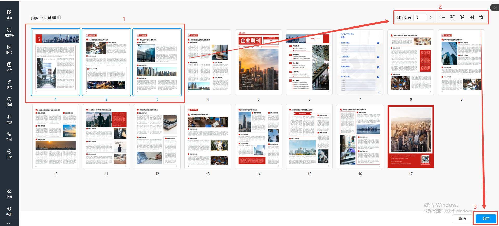 如果在編輯電子畫冊的時(shí)候需要同時(shí)移動較多頁面時(shí),可以使用批量管理頁面的功能。