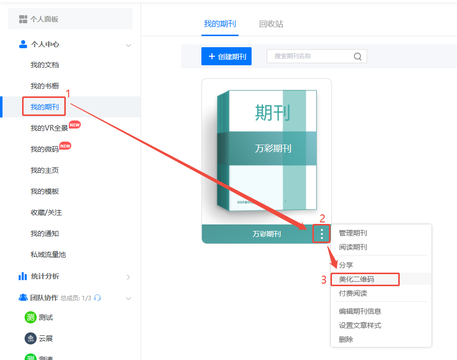 如果需要美化期刊集的二維碼,點進【我的期刊】,點擊三個點,選擇【美化二維碼】。