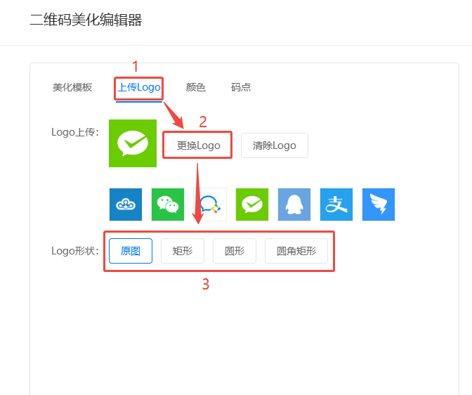 點擊【上傳logo】,再點擊【更換logo】上傳圖片,最后選擇【logo形狀】。