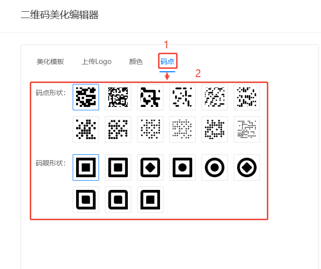 點擊【碼點】,下方設(shè)置碼點形狀和碼眼形狀。