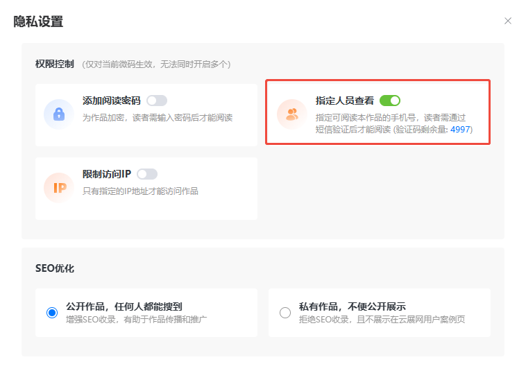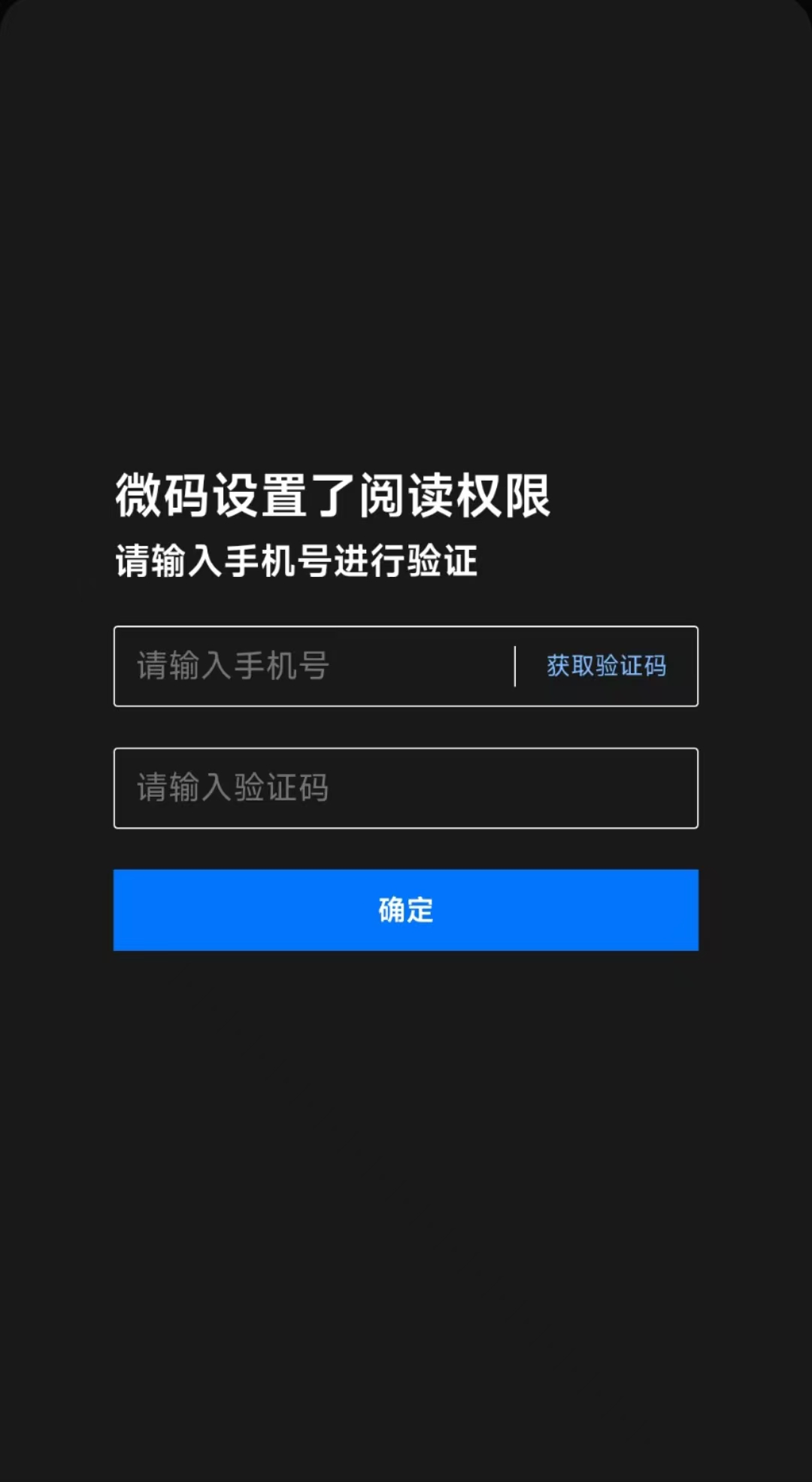 此功能可以后臺(tái)給微碼設(shè)置指定的手機(jī)號(hào),然后讀者打開(kāi)微碼后,需要通過(guò)指定的手機(jī)號(hào)收發(fā)驗(yàn)證碼驗(yàn)證后才可以觀看。