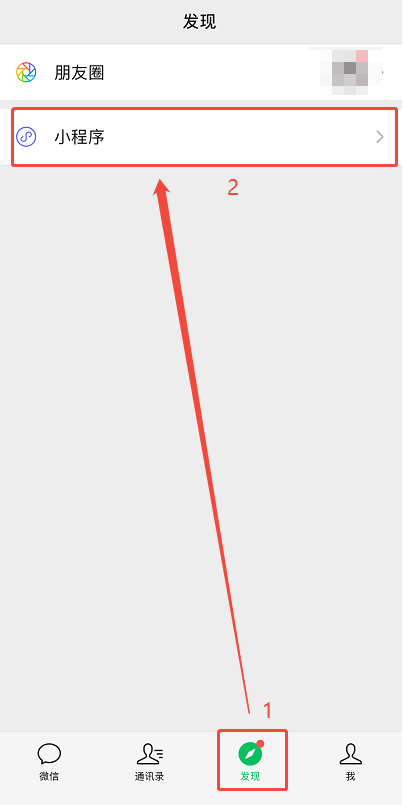 (1)微信上點擊【發(fā)現】,然后點擊小程序。