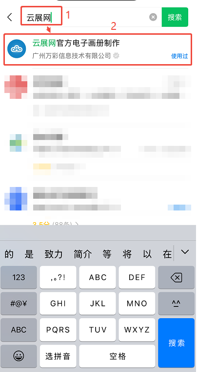 (2)上方搜索欄輸入【云展網】,會出現云展網的小程序,點擊進入。