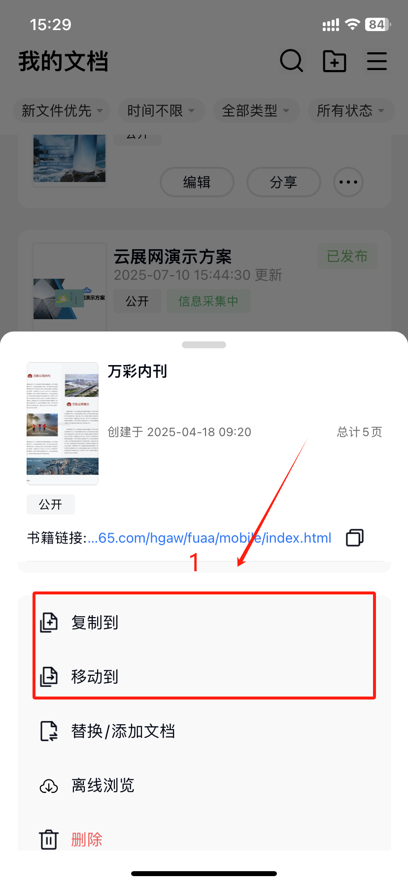 在【作品】頁面,找到需要復(fù)制/移動的書本,點(diǎn)擊三個點(diǎn)【…】打開