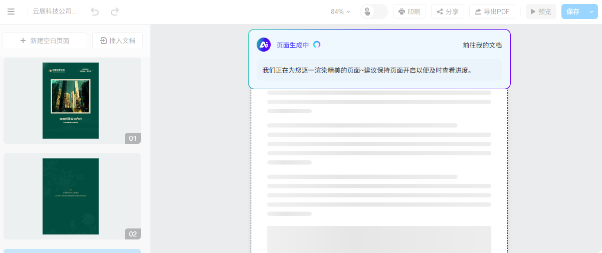點(diǎn)擊右下角的【開始AI排版】, 系統(tǒng)將自動進(jìn)入智能排版流程, 為您生成精美的電子畫冊。