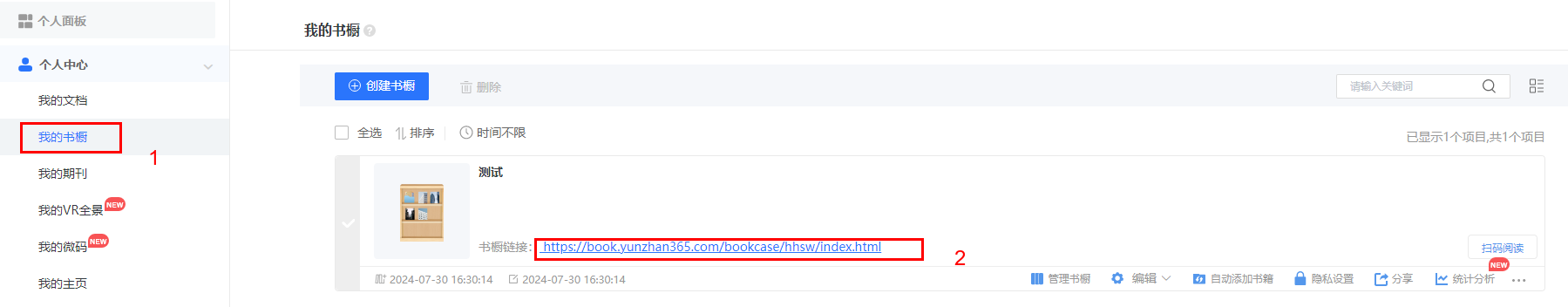點(diǎn)擊【我的書櫥】,復(fù)制書櫥鏈接。如這個(gè)書櫥鏈接為:https://baijingtest.sharedbook.cn/bookcase/qbba/index.html