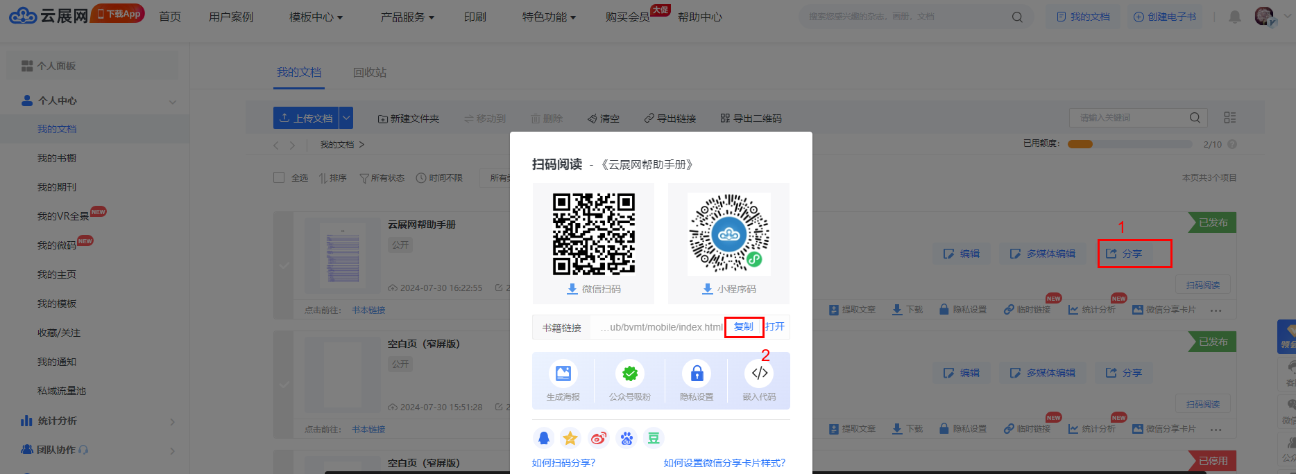 點(diǎn)擊【我的文檔】,【分享】復(fù)制書本鏈接,如這本書的鏈接為https://book.yunzhan365.com/kykh/tppo/mobile/index.html
