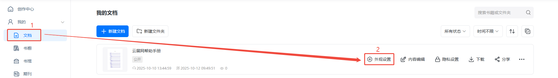 在【文檔】找到需要設(shè)置的電子書,點擊【外觀設(shè)置】進(jìn)入。
