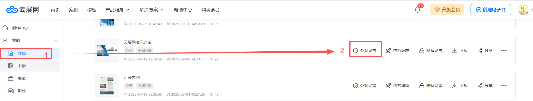 在【文檔】中找到需要添加目錄的雜志,點擊【外觀設(shè)置】打開