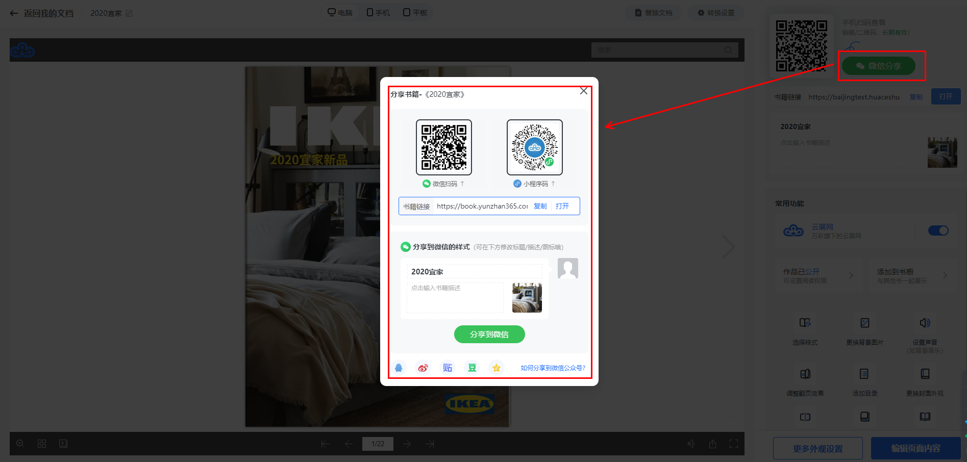 上傳成功以后生成的書本鏈接以及二維碼可以用于網(wǎng)站,微信(包含朋友圈,好友,微信群,公眾號),QQ郵箱等發(fā)布。