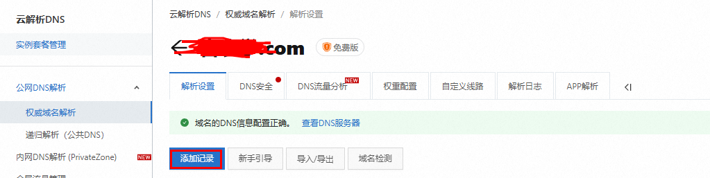 云解析DNS控制臺網址:https://dns.console.aliyun.com/?spm=5176.12818093_-1363046575.console-base_help.15.6a2816d0tAqT64
