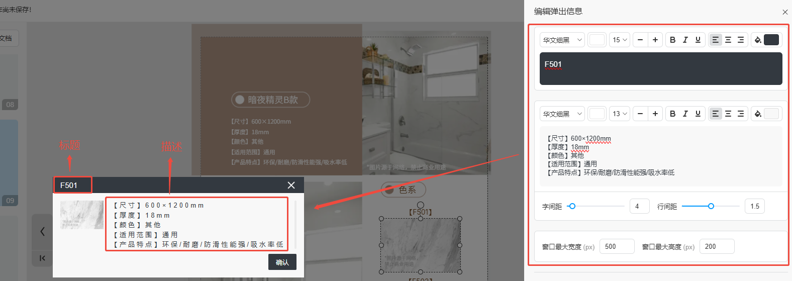 右側(cè)輸入標(biāo)題,描述,窗口最大高度和寬度,以及調(diào)整文字樣式。