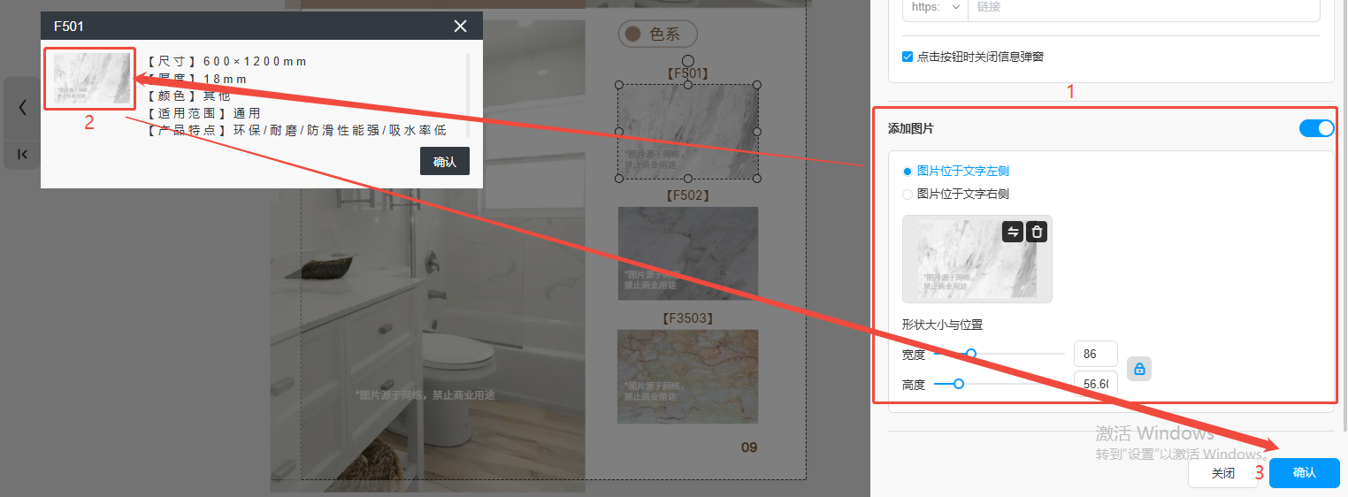 右側(cè)打開(kāi)【添加圖片】,上傳圖片,設(shè)置顯示文字和調(diào)整大小,點(diǎn)擊右下角【確認(rèn)】。