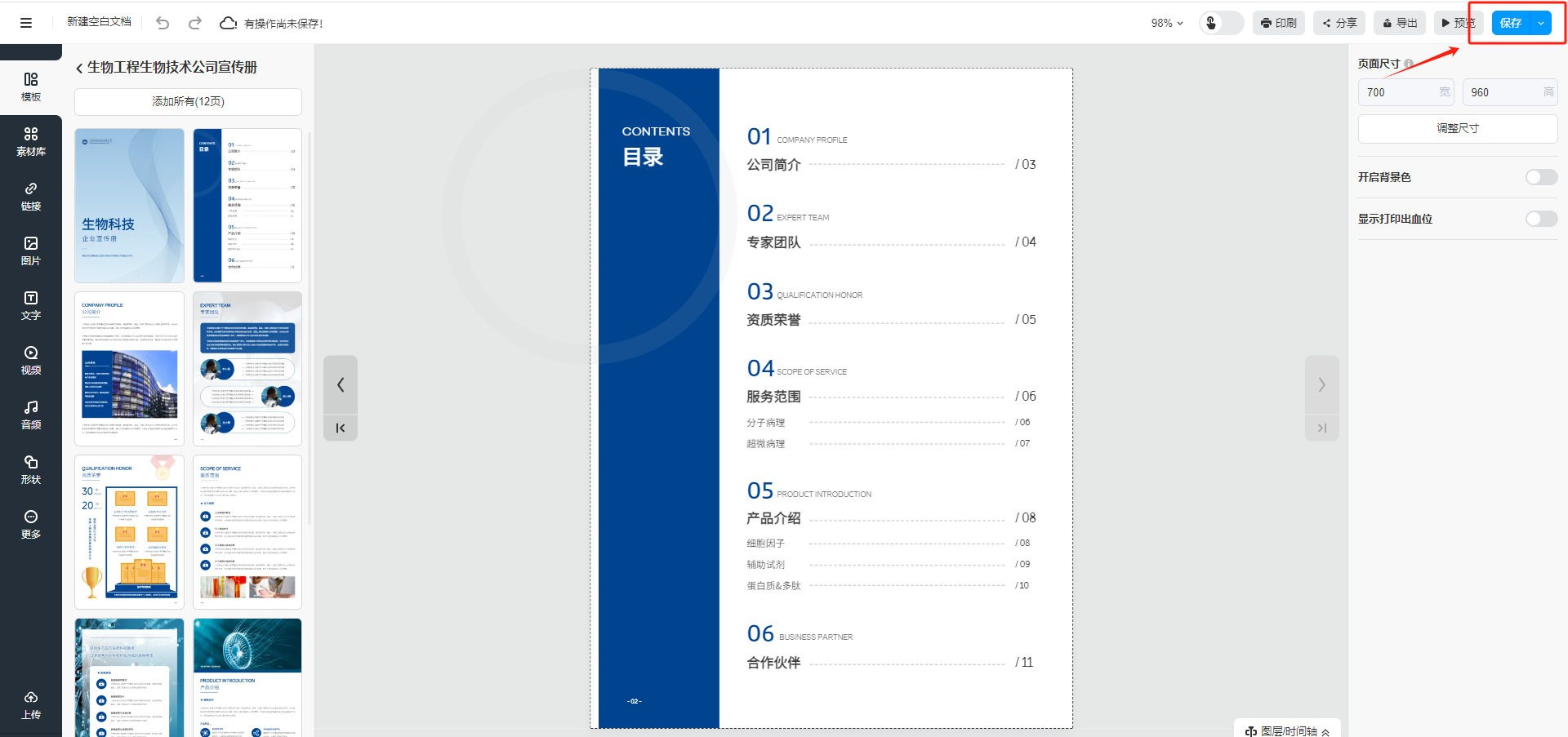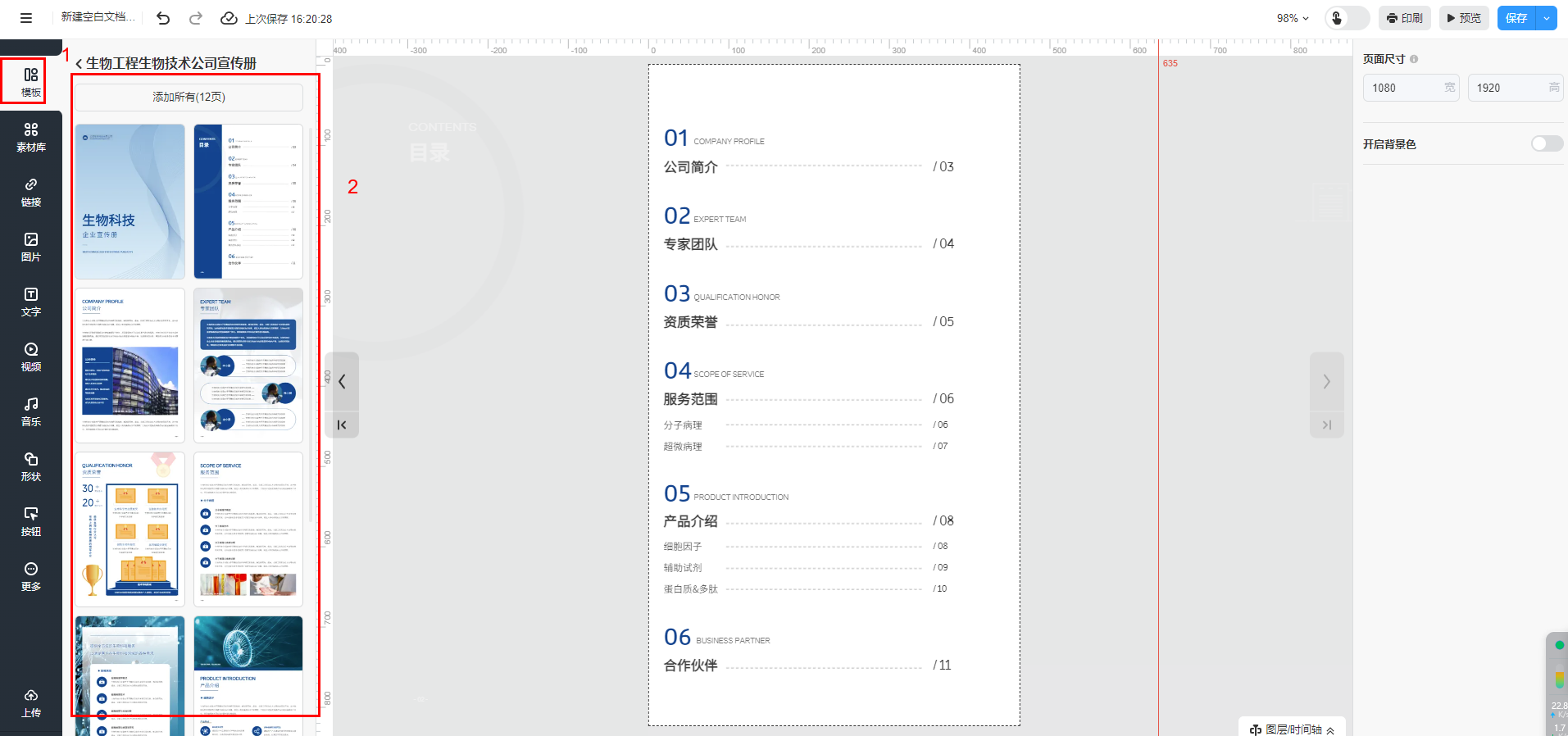 選擇【模板】進入模板界面,挑選心儀模板并選擇應(yīng)用模板全部頁面或其中一頁。