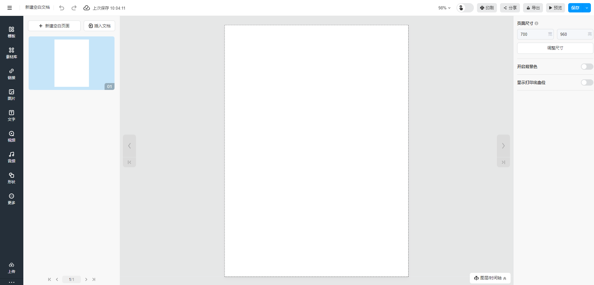 創(chuàng)建電子書空白文檔完成后,自動跳轉(zhuǎn)內(nèi)容編輯頁面(多媒體編輯界面)。在這里,你可以通過添加圖片、文字等一系列編輯操作進行電子書排版編輯。