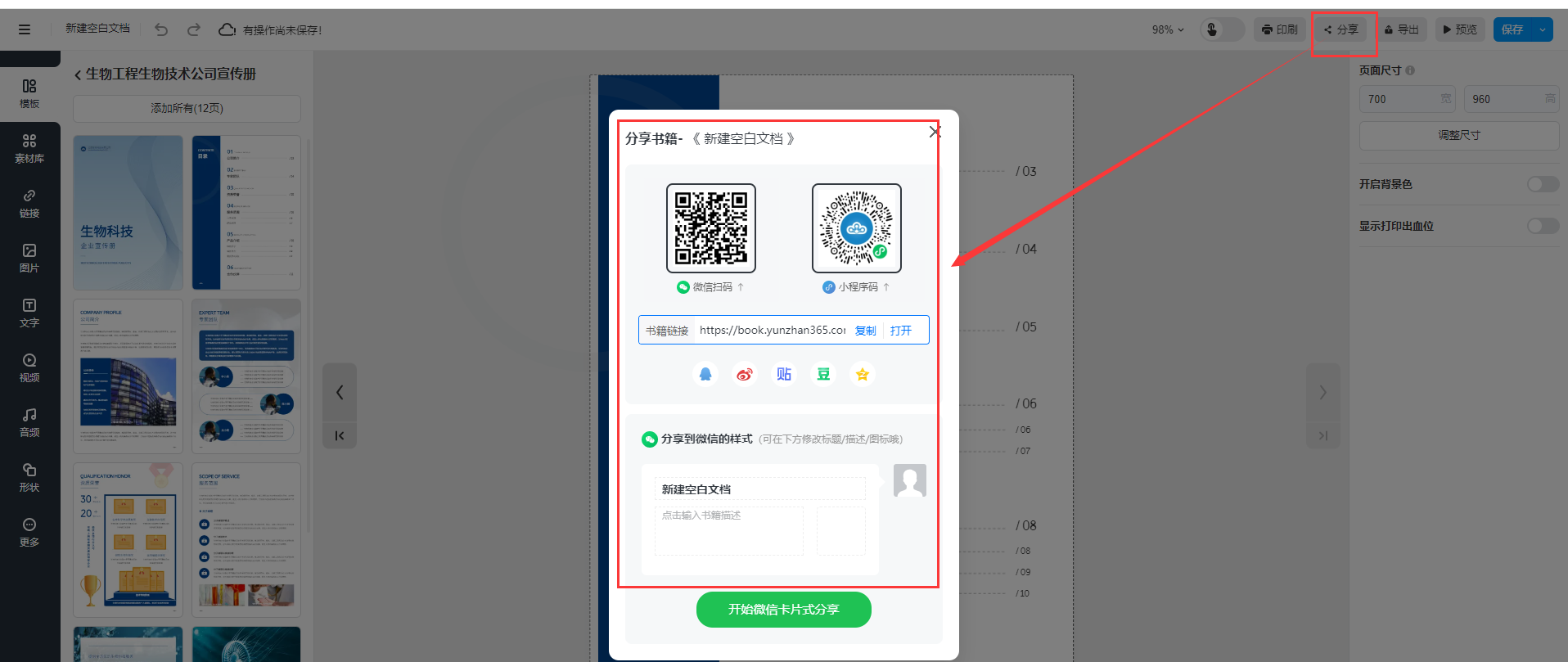點擊【保存】按鈕,保存后的電子書,可以點擊【分享】發(fā)送到朋友圈或通過鏈接/二維碼分享到微信/QQ好友。