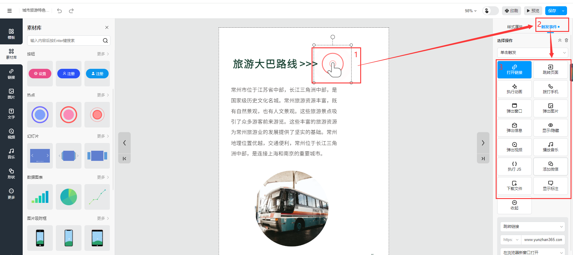 打開鏈接:可以設(shè)置自己公司官網(wǎng)鏈接或者購買鏈接,只要有效網(wǎng)址都可以,點(diǎn)擊熱點(diǎn)即可跳轉(zhuǎn)