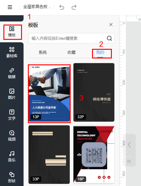 (2)點(diǎn)擊【模板】,【我的】,找到你要應(yīng)用的模板
