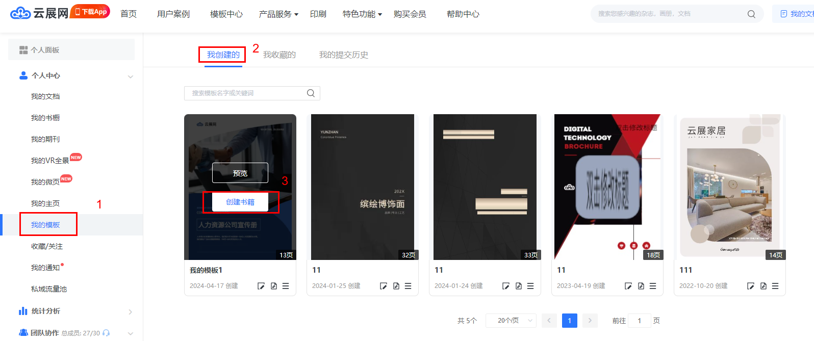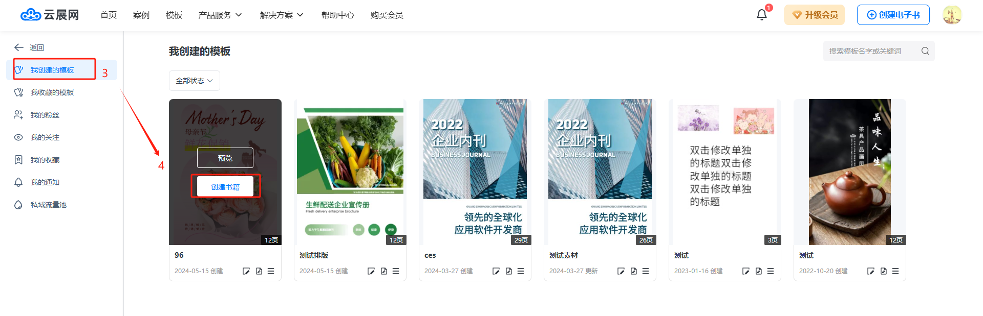 (4)另存的新模板會(huì)保存在【我的模板】/【我創(chuàng)建的模板】中,如果需要使用該模板進(jìn)行制作,則點(diǎn)擊【創(chuàng)建書籍】即可