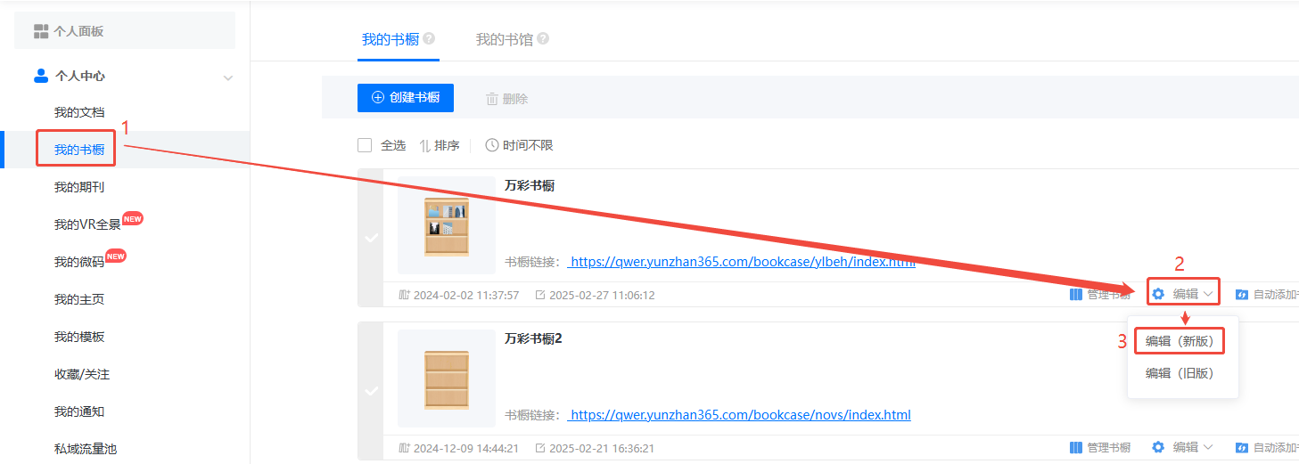 返回【我的書(shū)櫥】,點(diǎn)擊【編輯】,選擇【編輯(新版)】,進(jìn)入編輯頁(yè)面。
