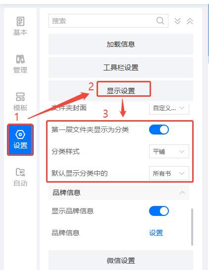 點(diǎn)擊【設(shè)置】,打開(kāi)【顯示設(shè)置】,找到并打開(kāi)【第一層文件夾顯示為分類(lèi)】。