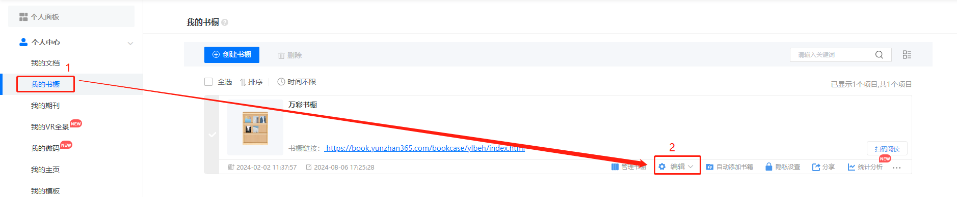 (1)點(diǎn)擊【我的書(shū)櫥】找到對(duì)應(yīng)書(shū)櫥,點(diǎn)擊【編輯】,進(jìn)入編輯界面。