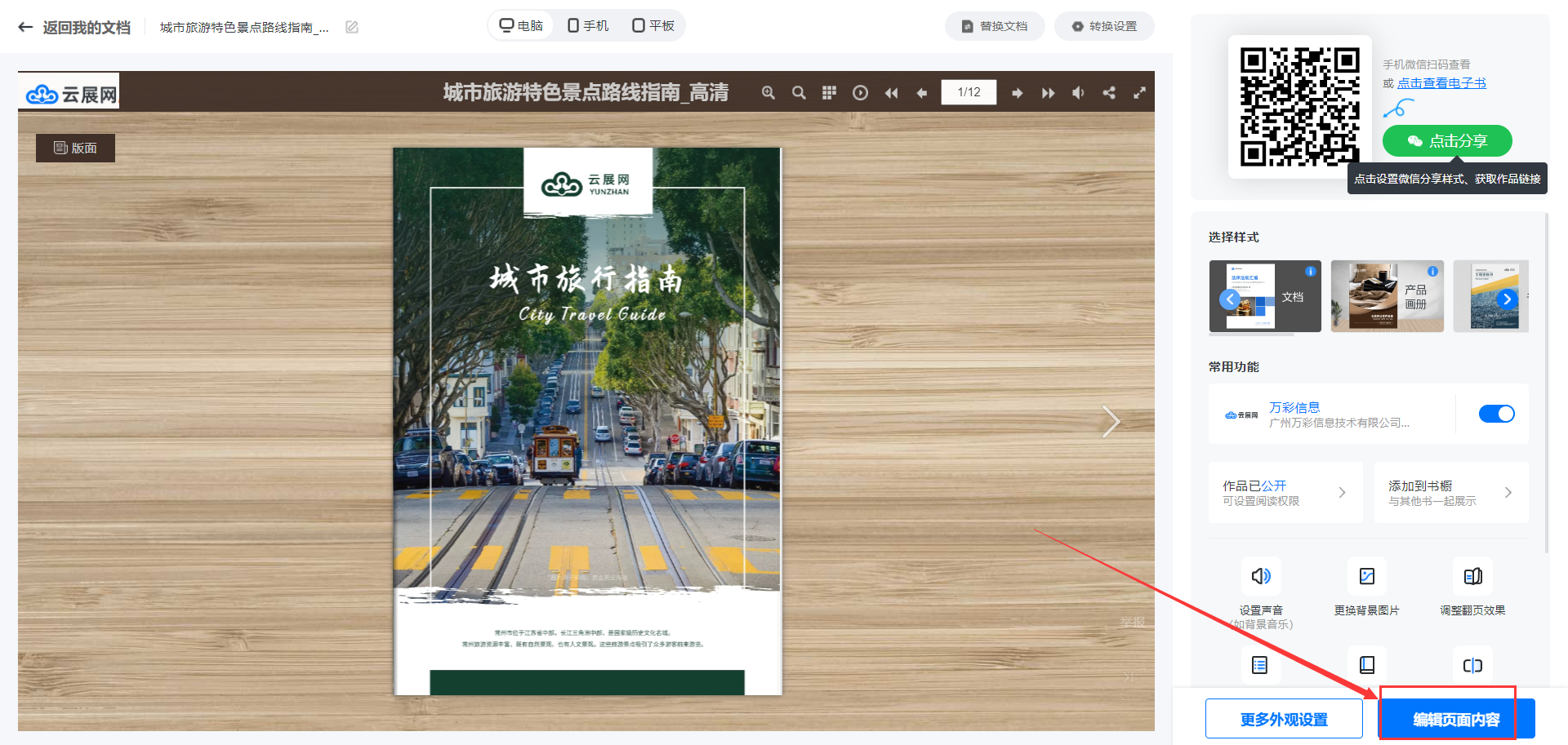 當(dāng)你上傳文檔,轉(zhuǎn)換生成電子書后,點(diǎn)擊【編輯頁面內(nèi)容】也可以在這里打開多媒體編輯器。