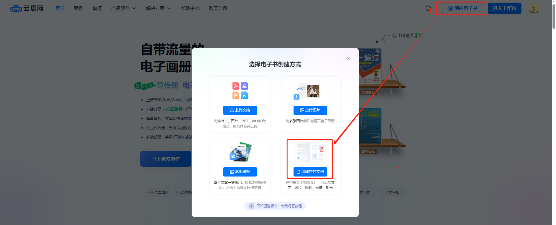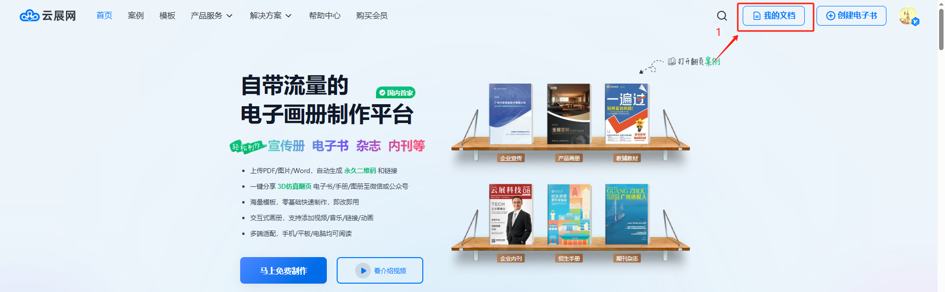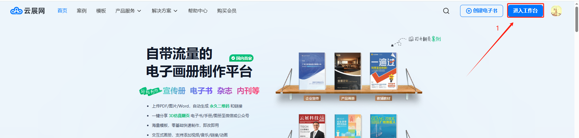 你可以從云展網(wǎng)首頁點(diǎn)擊【我的文檔】/【進(jìn)入工作臺(tái)】界面
