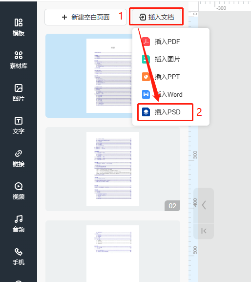 a)點擊【插入文檔】,然后點擊【插入PSD】。