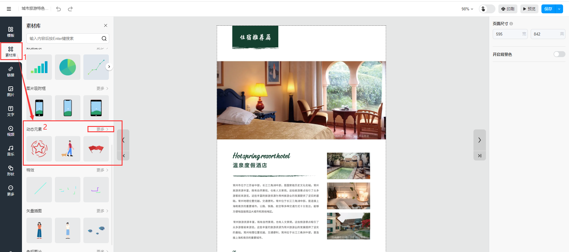 點擊【素材庫】,選擇【動態(tài)元素】,選擇你需要的動態(tài)元素,單擊或拖拽元素至畫布。
