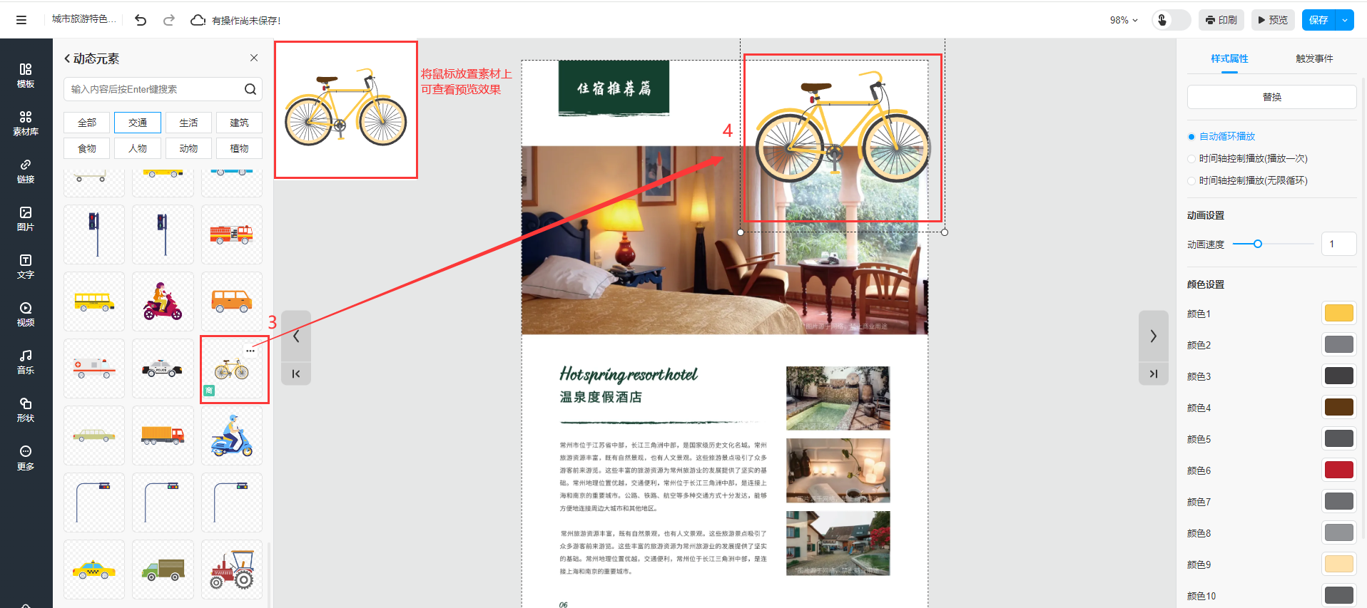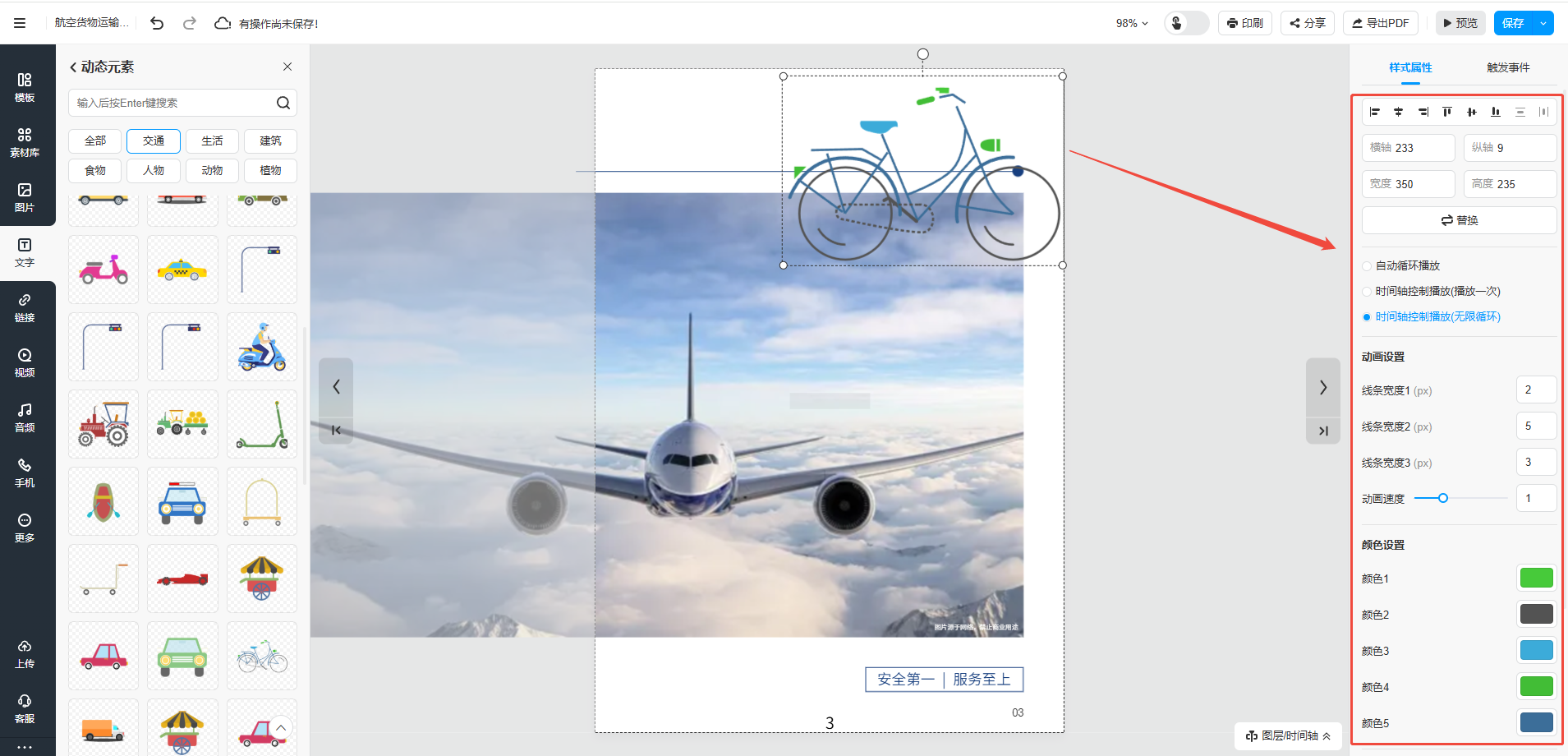 在添加動態(tài)元素/特效后,你可對其進(jìn)行動畫設(shè)置,調(diào)整動畫的速度和播放設(shè)置。
