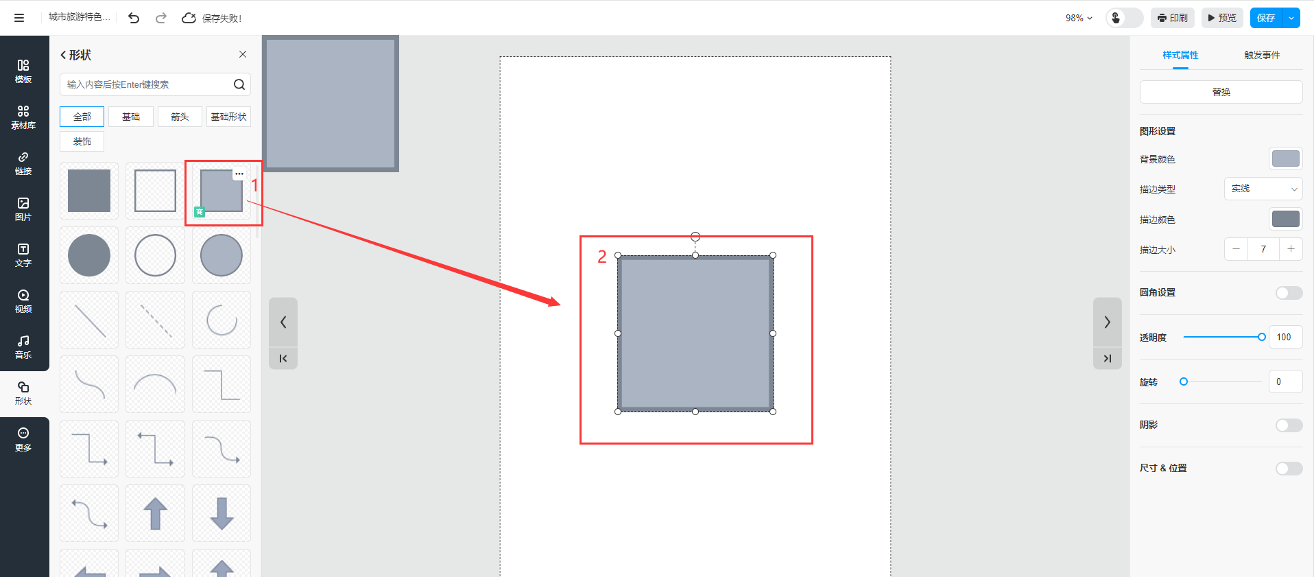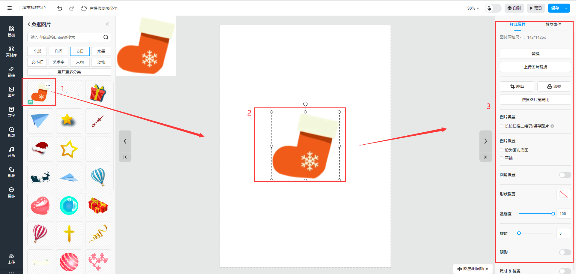 選中你想要設(shè)置樣式屬性的元素,在右側(cè)屬性面板可進(jìn)行對齊、替換、動畫、顏色、透明度、陰影、尺寸和位置以及旋轉(zhuǎn)等設(shè)置。