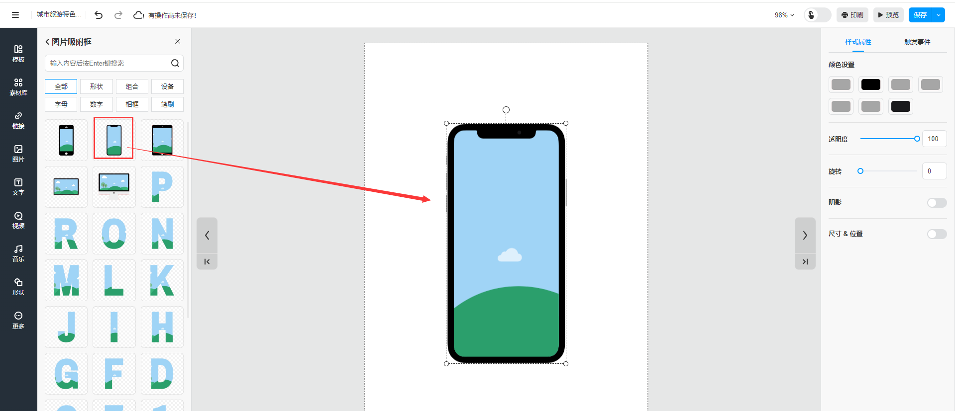 手機(jī)、相框、字母等圖片容器。你可以將其他的圖片放置在這個容器中,例如使用一個手機(jī)樣式的容器,然后再把其他圖片放置進(jìn)去。