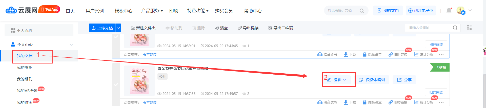 在【我的文檔】頁面,點(diǎn)擊【編輯】進(jìn)入