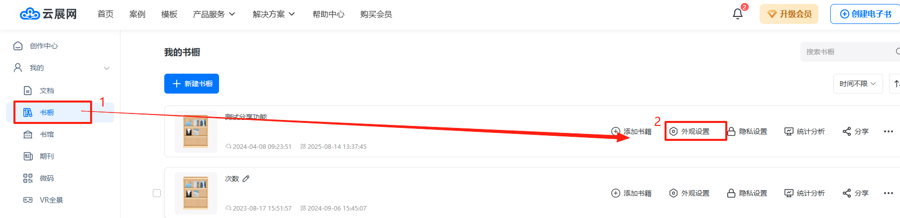 在【書櫥】頁(yè)面 ,點(diǎn)擊【外觀設(shè)置】進(jìn)入