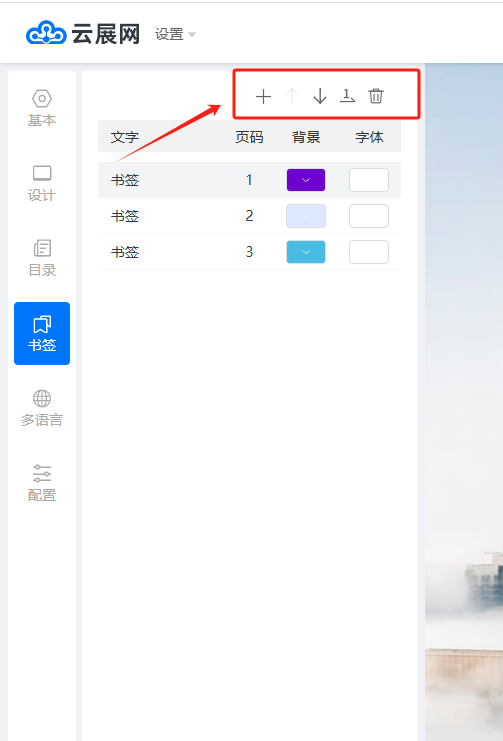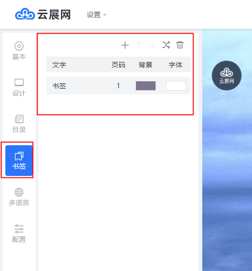 進入編輯頁面后,點擊【書簽】打開設(shè)置面板